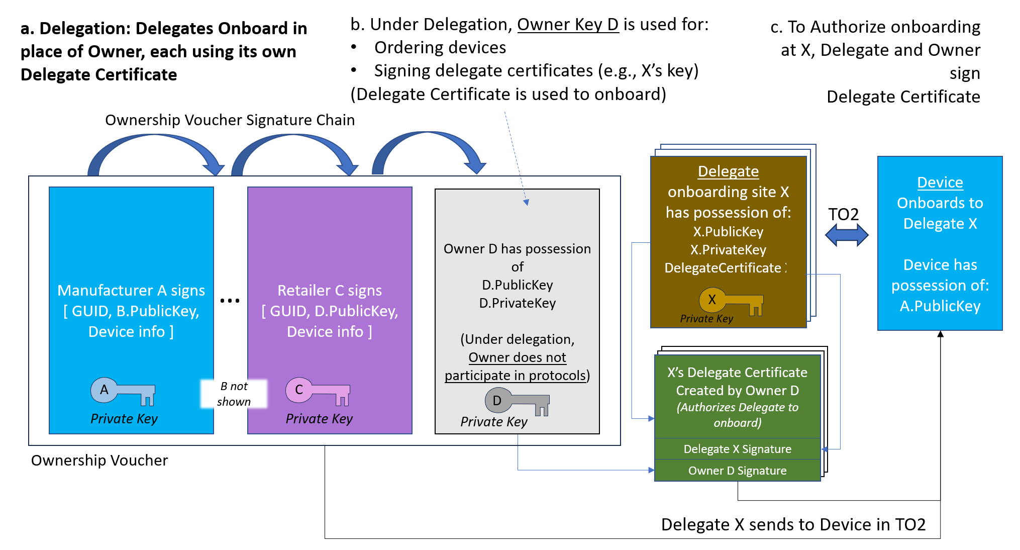 Delegation introduces an (optional) enterprise workflow for buying and consuming devices with FDO (See § 3.5.1 Theory of Operation)